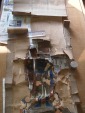左の画像は、修復前で軸がバラバラになっている。 破断部分は、セロテープが貼ってあった。 しみ抜きを施して修復 |